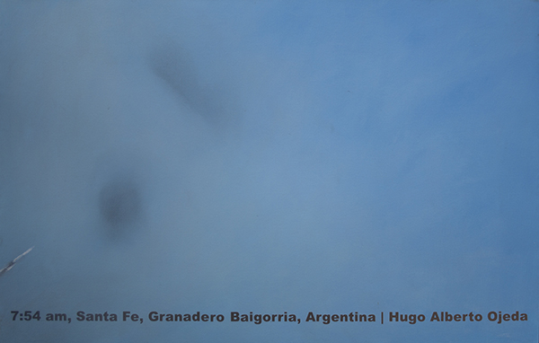 Emerged from a call that was profiting from the social networks platform, the e-mail and other ITC forms, Chuli requested the attendants a photo of the sky they daily see in their place of residence. These photographic images were later transformed and, using the artistic gesture of appropriation, were object of a complex manipulation of their concomitant courses through the painting “interpretation” of new sign structures that approach them more to the reinvention of the “instrumental nostalgia” of individuals…
